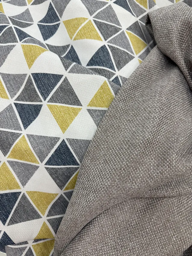 Минди желтый — ткань димаут с актуальным геометрическим рисунком. Обратная сторона выполнена из однотонной рогожки. Отлично подходит для пошива штор, подушек, наволочек и другого домашнего текстиля. Ткань имеет стойкость к деформации и не требует особого ухода. Можно стирать при температуре воды 30 градусов.